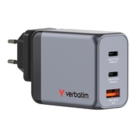 Verbatim (32201) GNC-65 GaN Charger 65W with 2 x USB-C PD 65W / 1 x USB-A QC 3.0 (EU/UK/US)